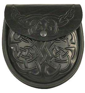 Celtic Knotwork Sporran with Celtic knotwork pattern on flap and front.Sporran closes with a snap button fastener.(Straps and chains are included).